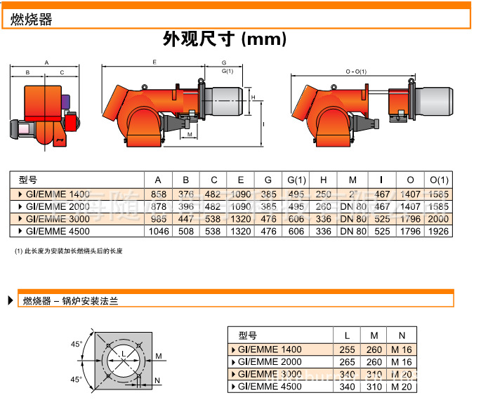 GI/EMME4500 | 400万大卡 比例调节 油气两用燃烧器